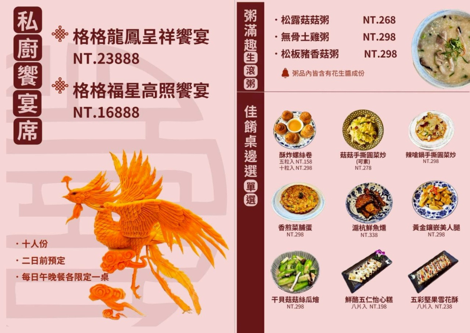 基於一個奇怪的理由,我踏進了馥格格,這間店的一樓看起來不像餐廳,主要用餐區是在二樓,裝潢走溫暖風格,餐廳裡放著中式的輕音樂。餐點從一個人、兩三人、一桌都可以搞得定,對長輩比較困難的一點,大概就是需要走樓梯到二樓吧?