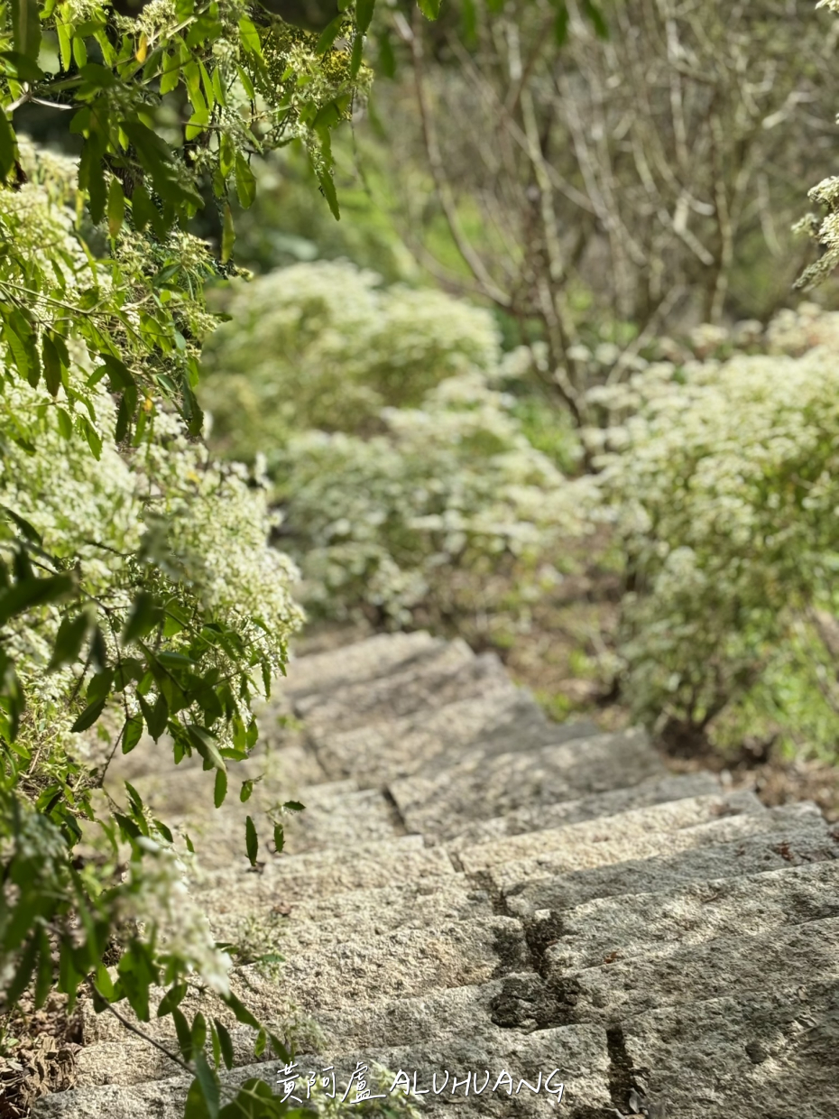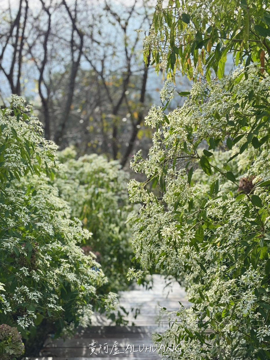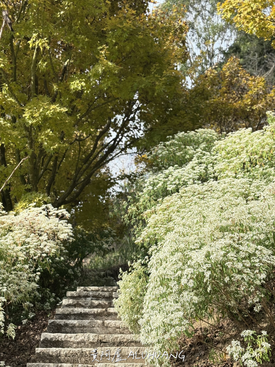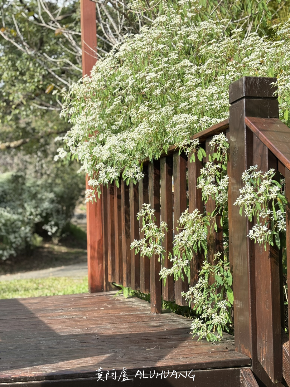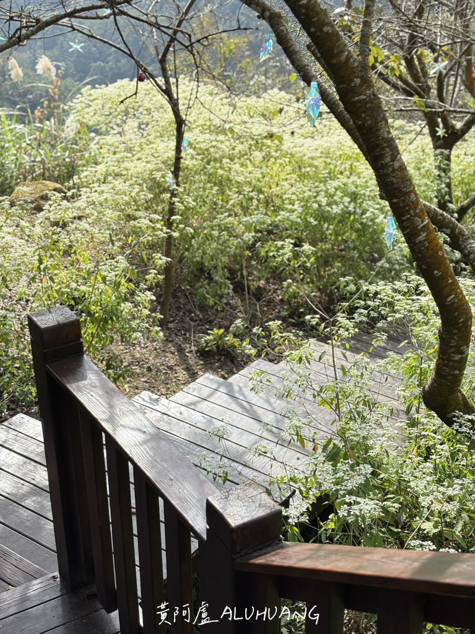 拍完後繼續往上走,接下來會看到長長的階梯,兩旁都有白雪木,這裡是相當適合拍照的景點。