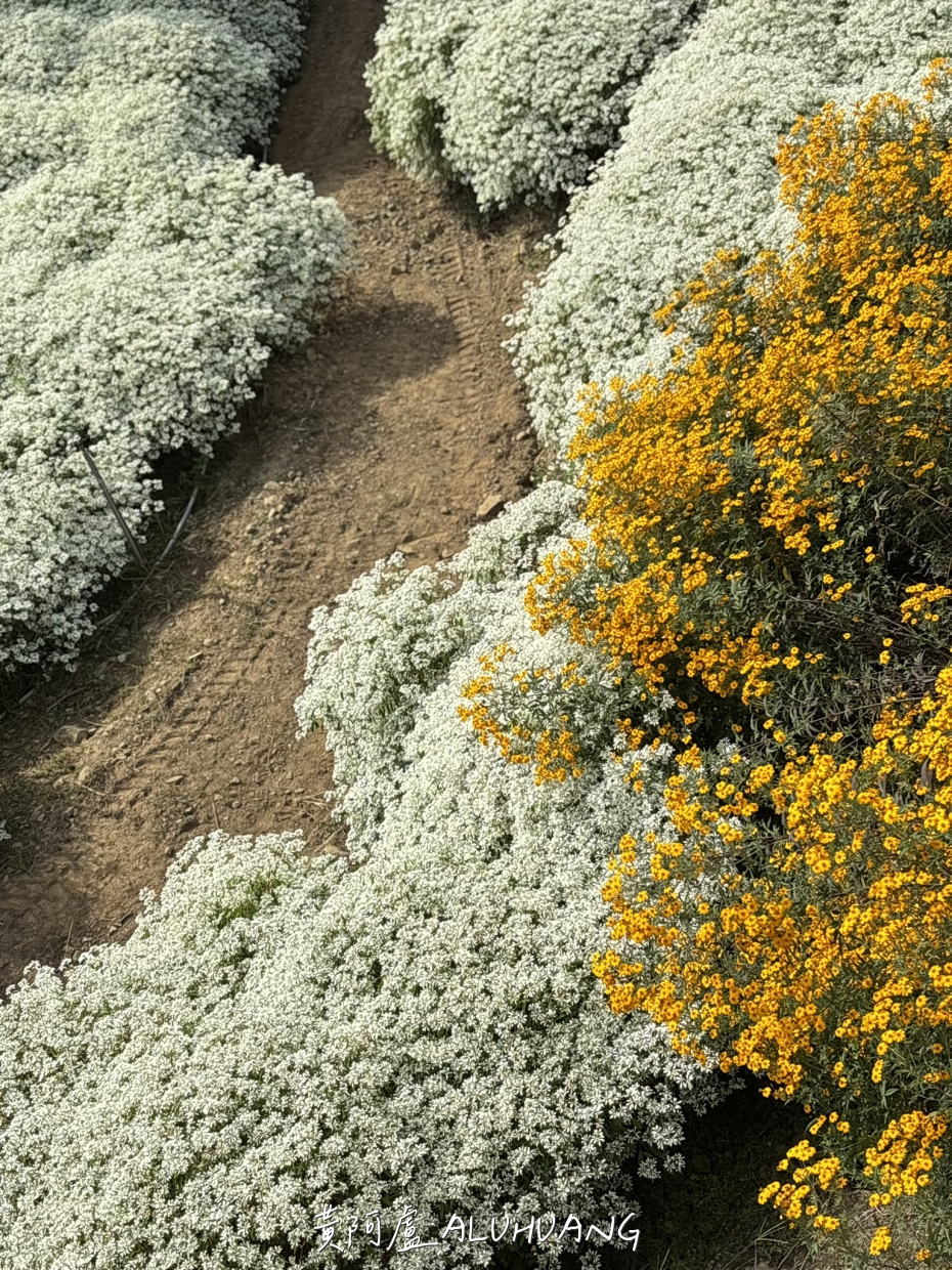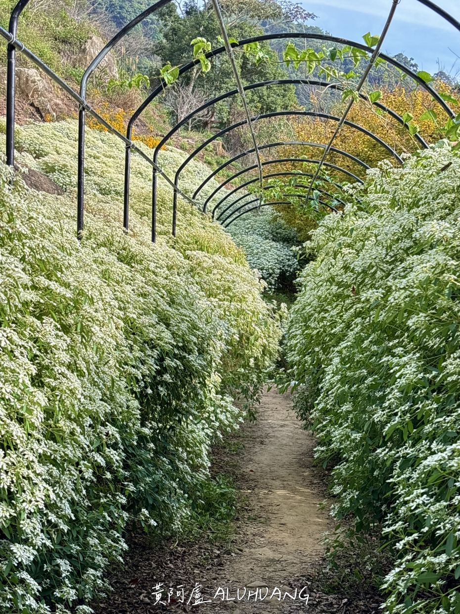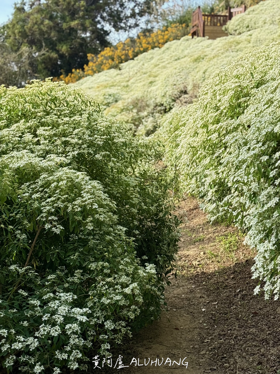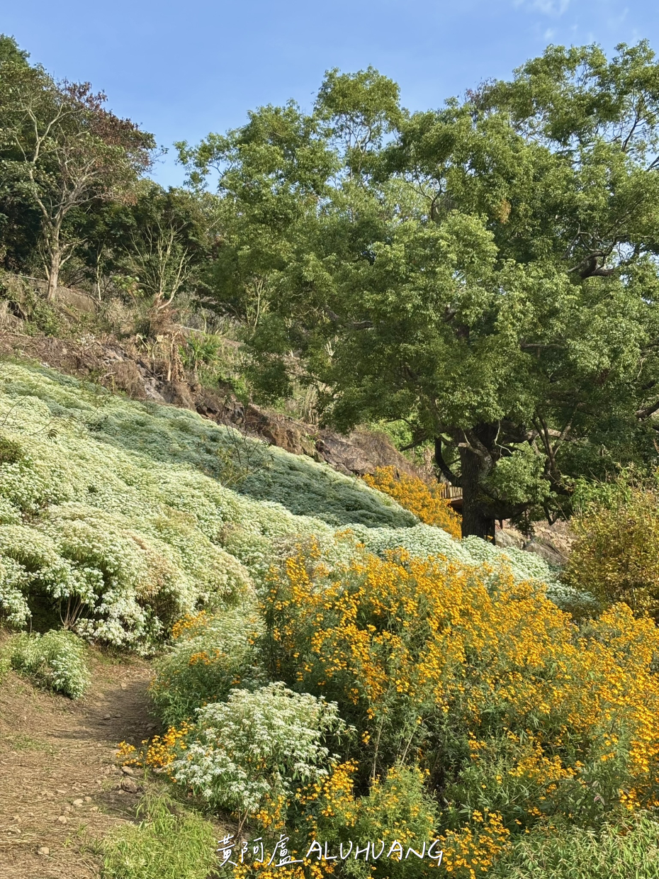 在左手邊看到第三間廁所的同時,往右看,這裡就是農場裡最大片的白雪木和萬壽菊,恭喜你來到了最高點啦!