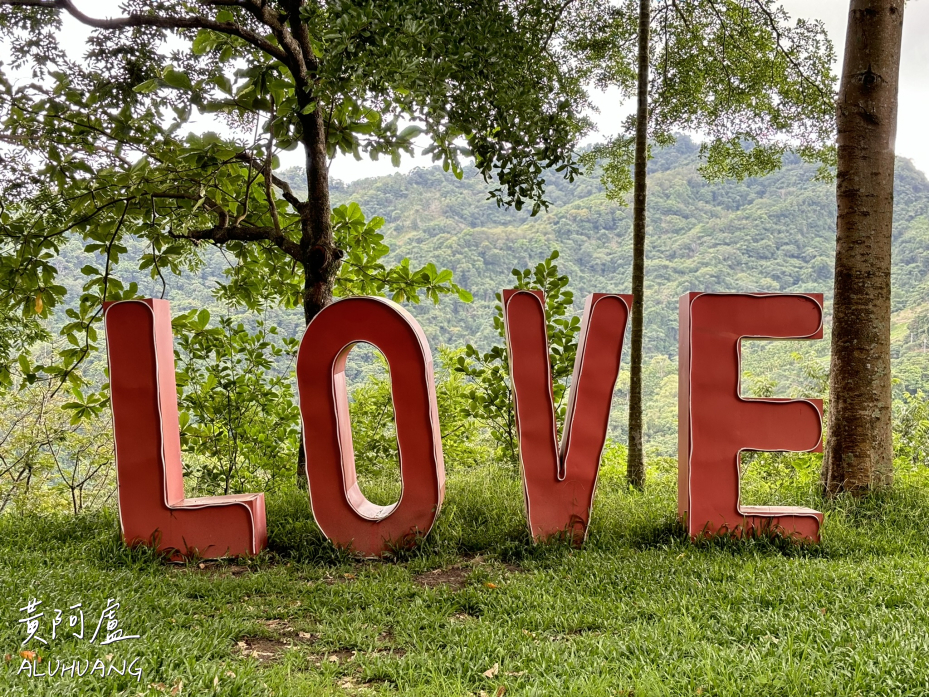 先經過左手邊的LOVE,再往前走,你會看到右手邊有一片繡球花,正前方有第二間廁所,拐個彎再往上走。